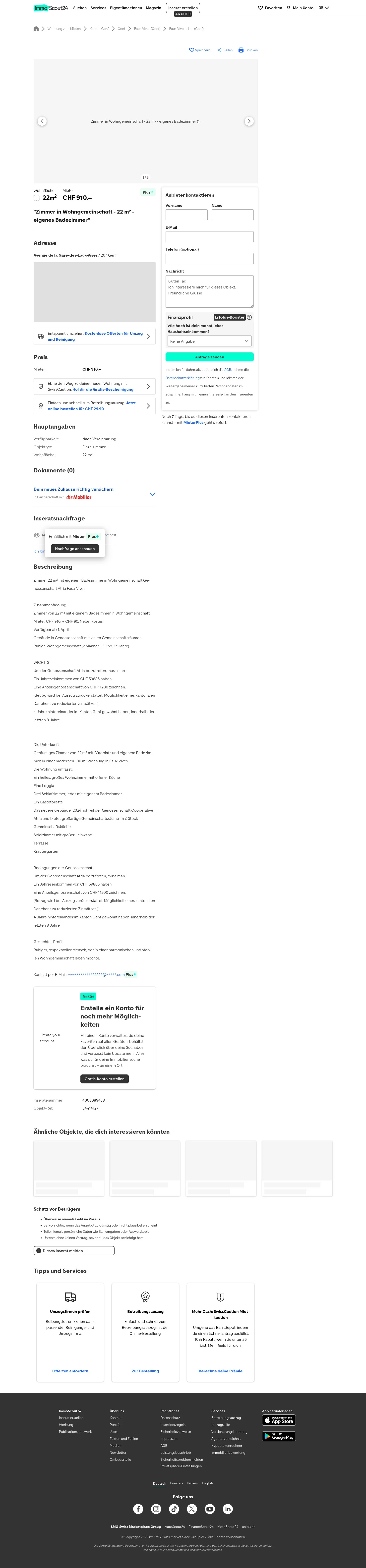 This 22 m² room with a private bathroom is located in a flatshare within the cooperative Atria in Genève (1207), Eaux-Vives.