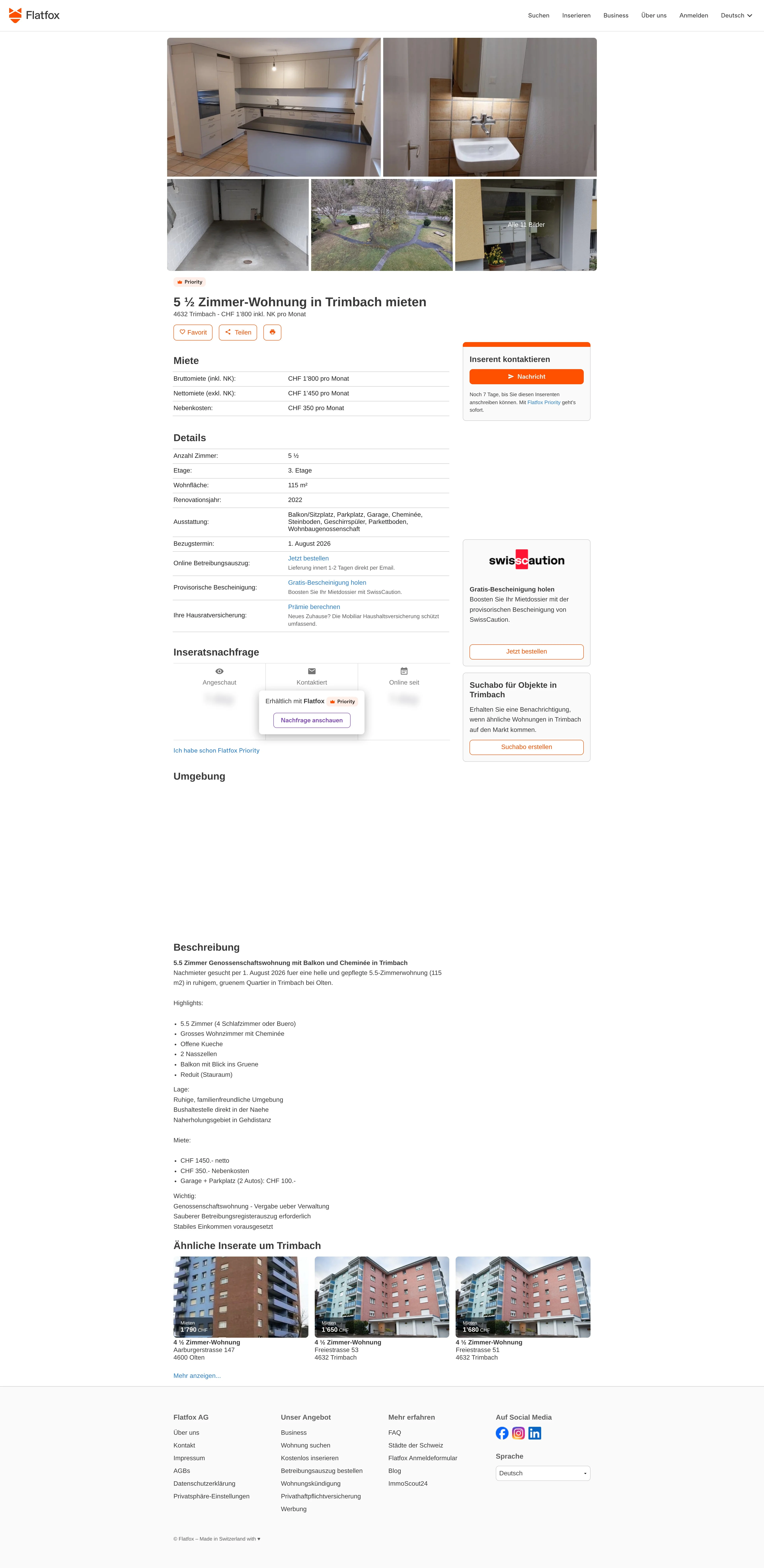 This 5.5-room apartment in Trimbach (4632), near Olten offers 115 m² of living space and is available from 1 August 2026.