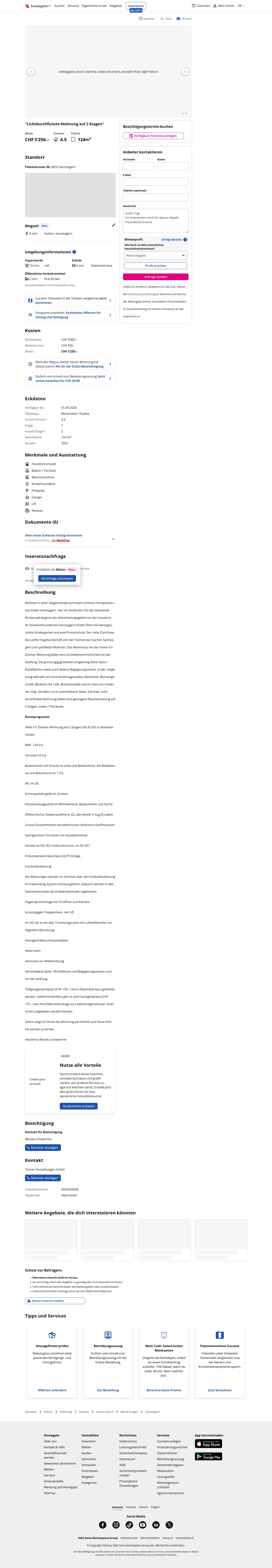 This 4.5-room apartment in Samstagern (8833) offers 124 m² of living space and is part of a residential building belonging to the cooperative Gemeinde Richterswil. The location is in the rural section of the municipality with nearby recreational areas, close to the Zurichsee and Hüttnersee. Childcare, kindergarten and a primary school are available in Samstagern.