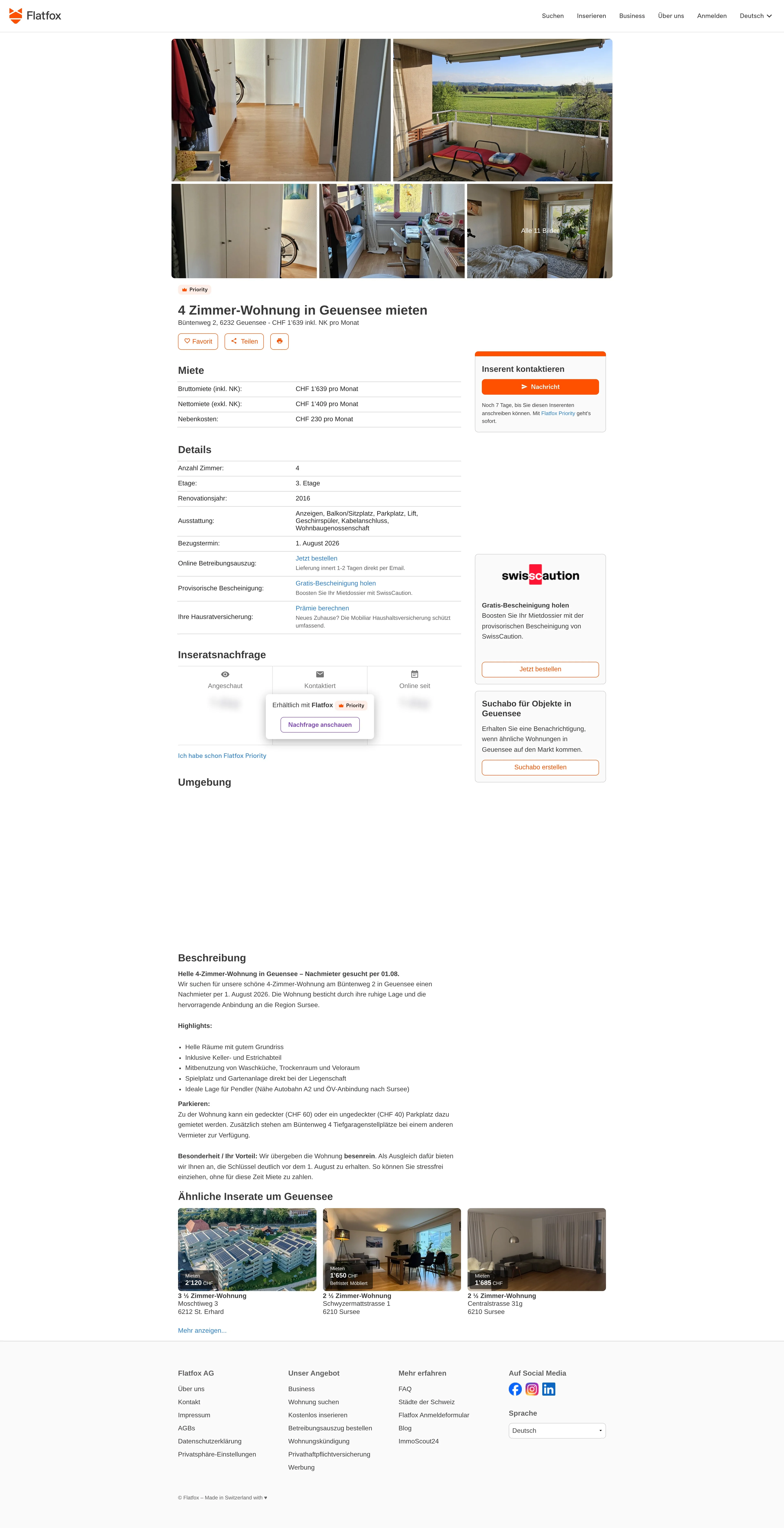 This 4.0-room apartment at BĂĽntenweg 2, 6232 Geuensee is available from 01.08.2026. Rent: CHF 1,639/month.