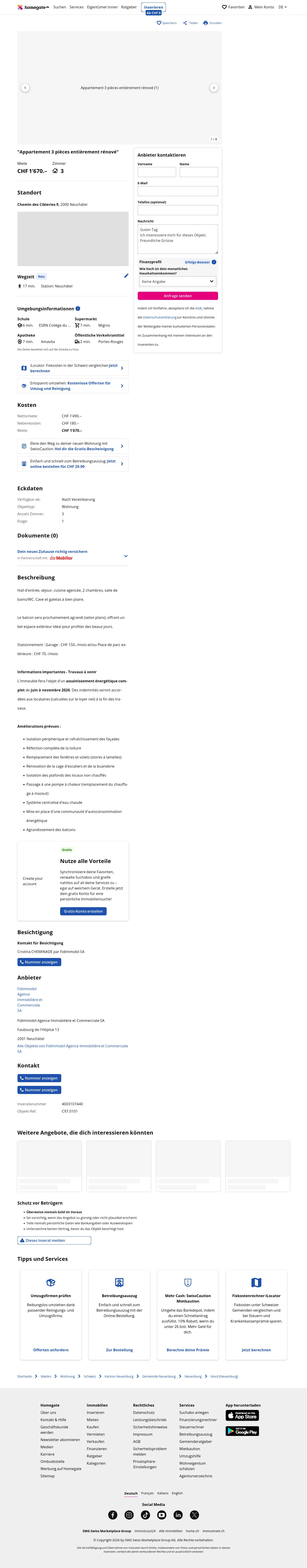 Rent: CHF 1670/month