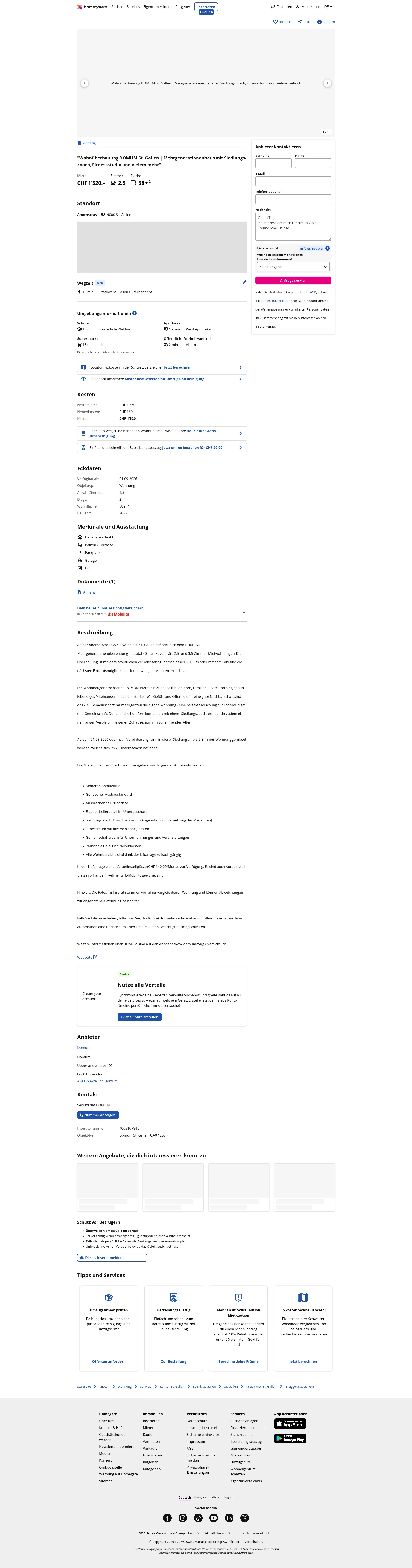 A Domum multigenerational development is located at Ahornstrasse 58/60/62 in 9000 St. Gallen. The development comprises a total of 40 attractive 1.5-, 2.5- and 3.5-room rental apartments and is very well connected to public transport. Nearby shopping facilities are reachable within a few minutes on foot or by bus.
