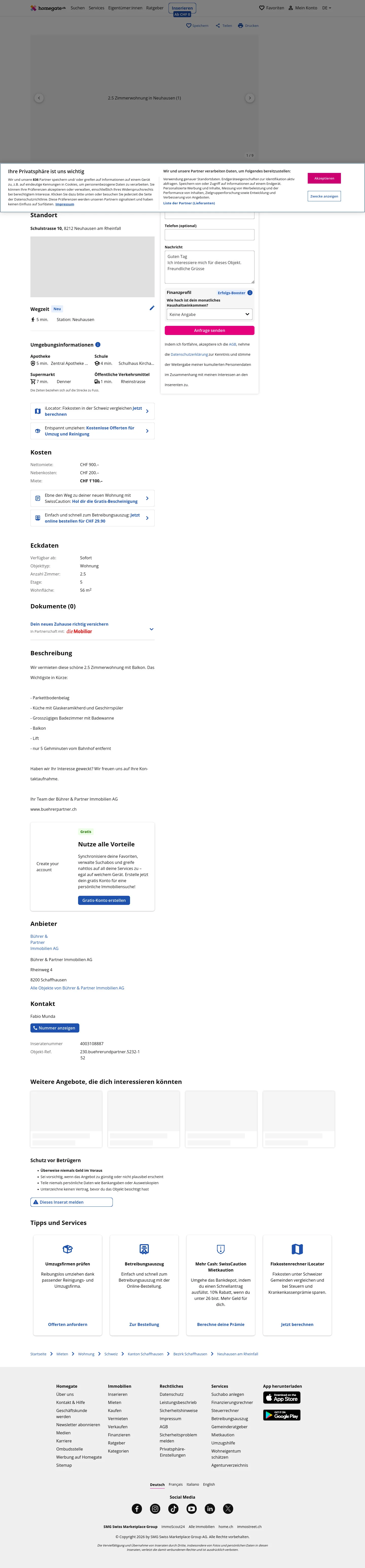 This 2.5-room apartment in Neuhausen am Rheinfall (8212) offers 56 m² of living space.
